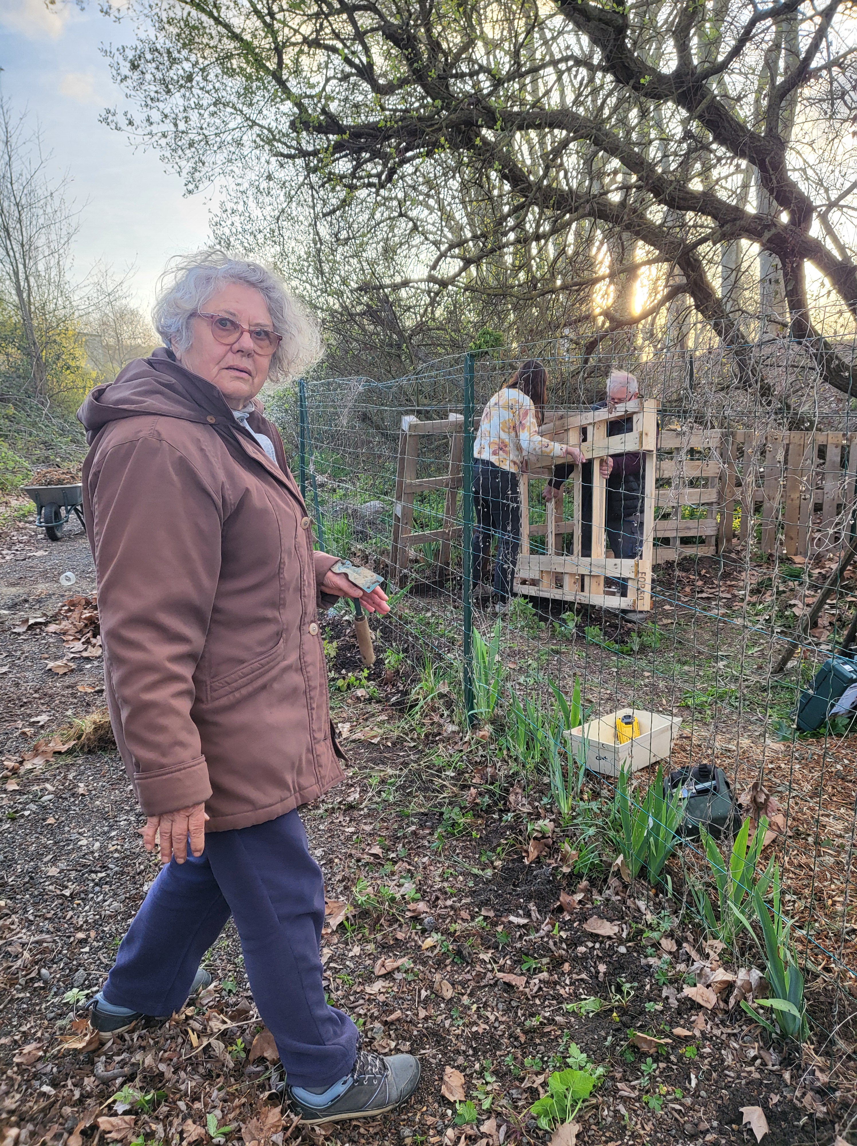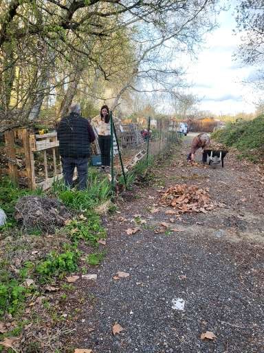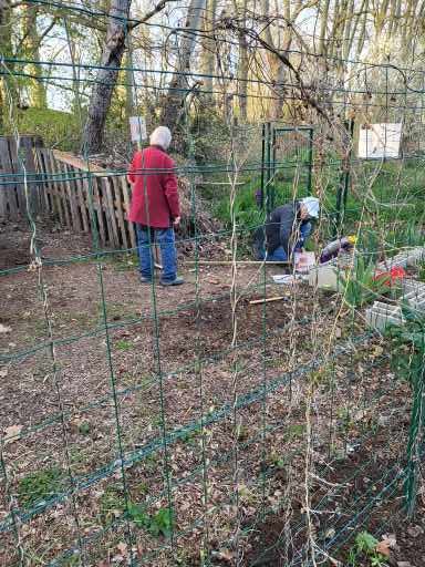 Une équipe bien motivée, Joelle, Arlette, Raymond, Serge, Gaelle et Christiane, s’est attelée à fixer des palettes pour délimiter un 4ème bac, l’allée centrale a été recouverte de broyat, la clôture nettoyée et des consignes d’utilisation des bacs ont été affichées.